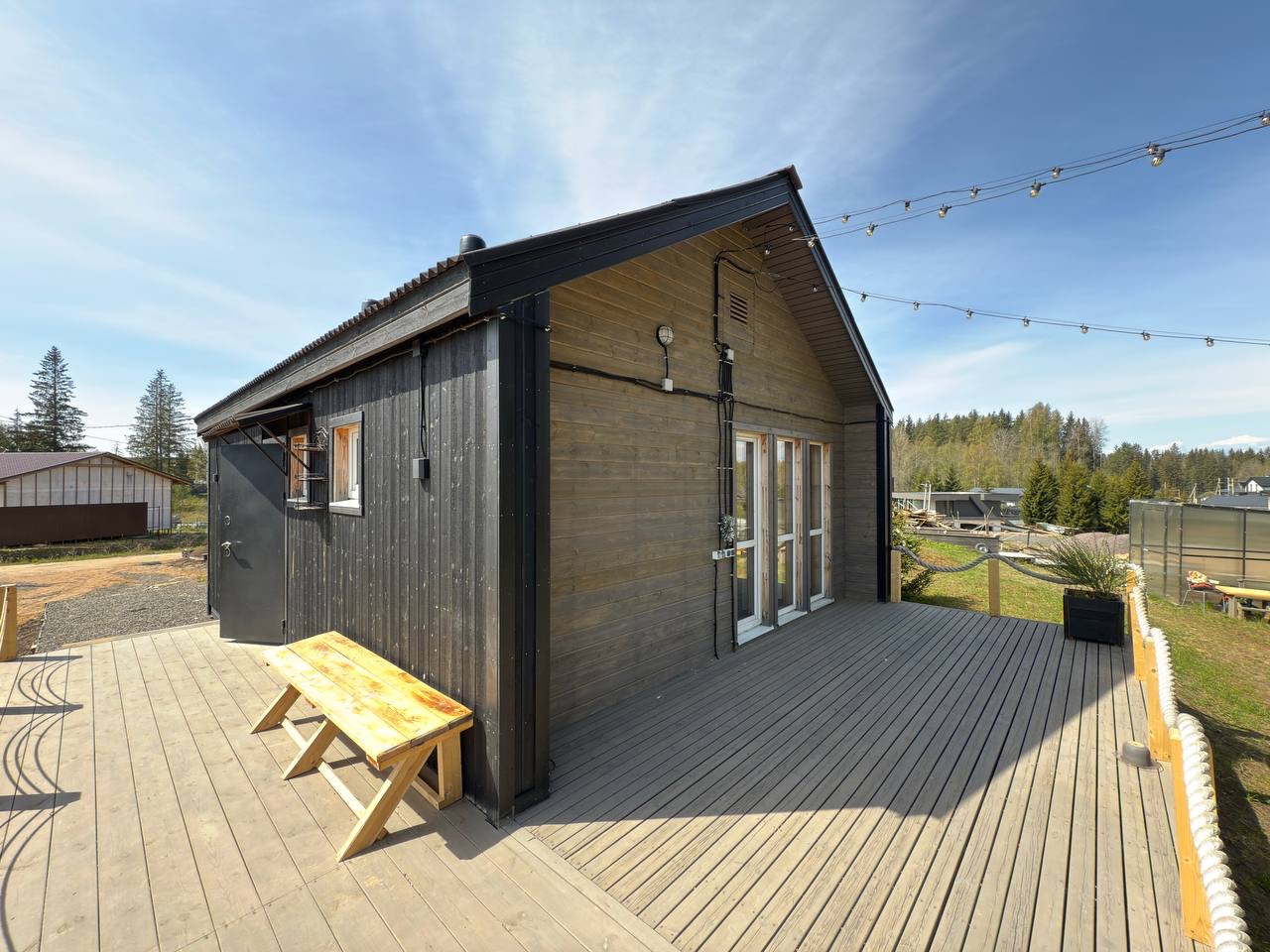 Сканди Дача 59 — это небольшой, тёплый дом, где всё создано для отдыха без суеты. Просторная кухня-гостиная собирает всех за большим столом, налить чай и смотреть, как за окнами медленно темнеет.