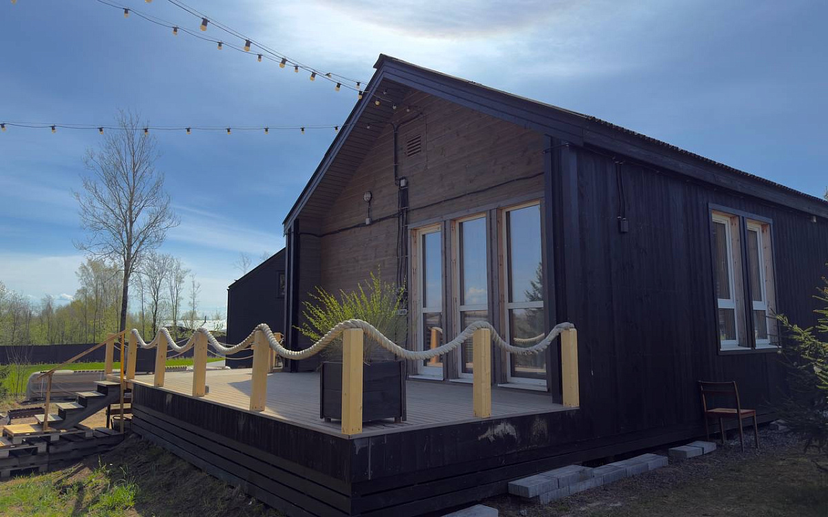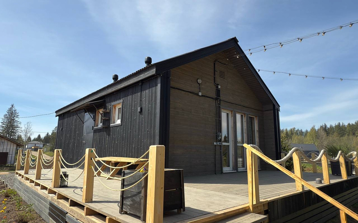 Две отдельные спальни дарят личное пространство каждому. Здесь уютно в любое время года: летом дом наполнен запахом сосен и свежего воздуха, зимой — теплом дерева и мягким светом.