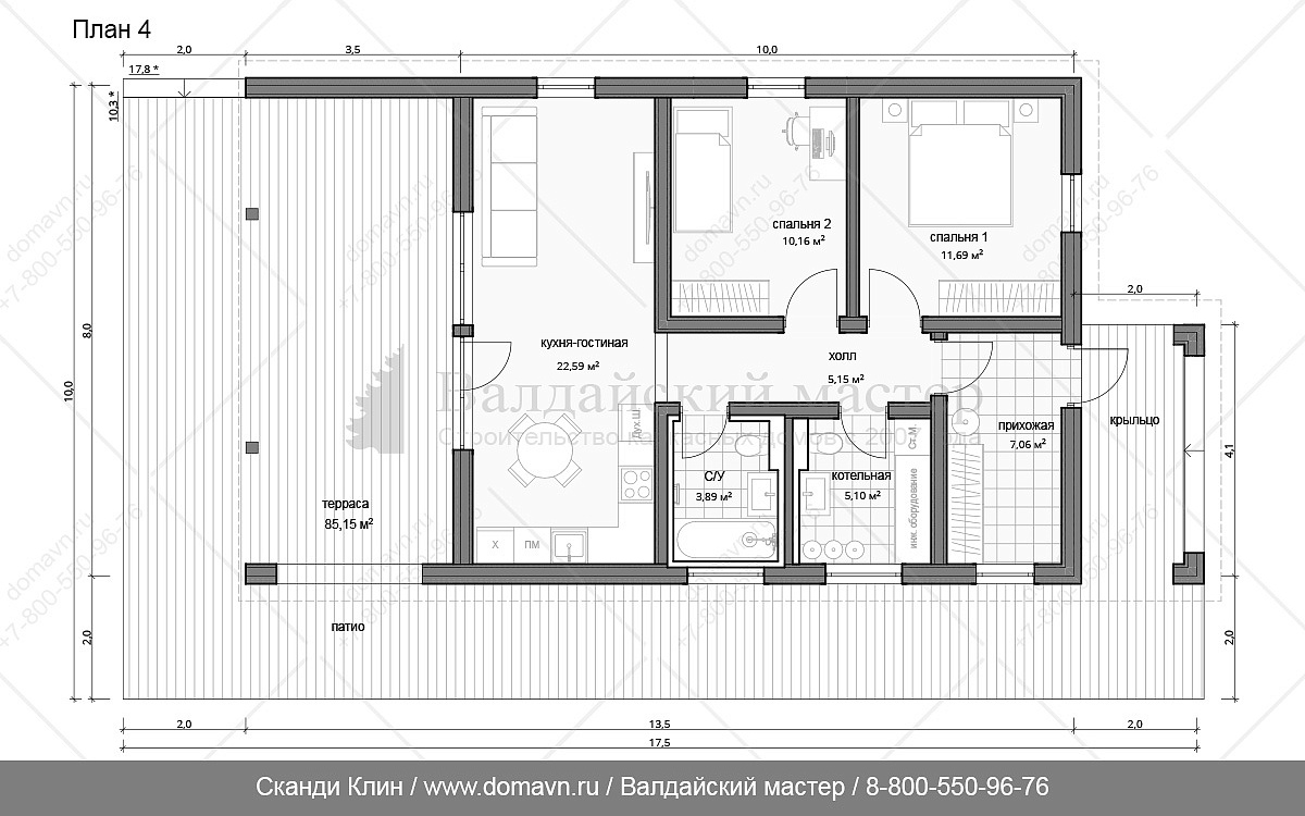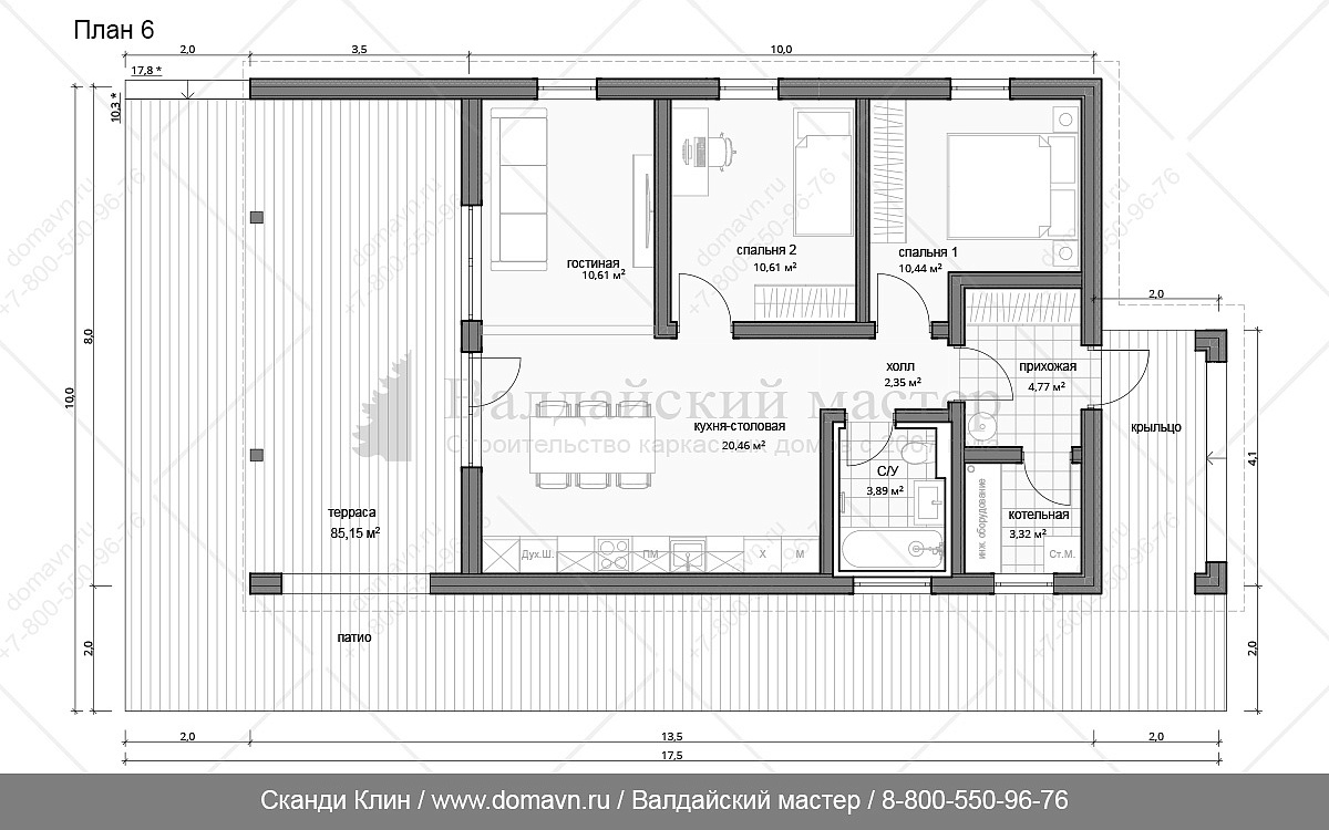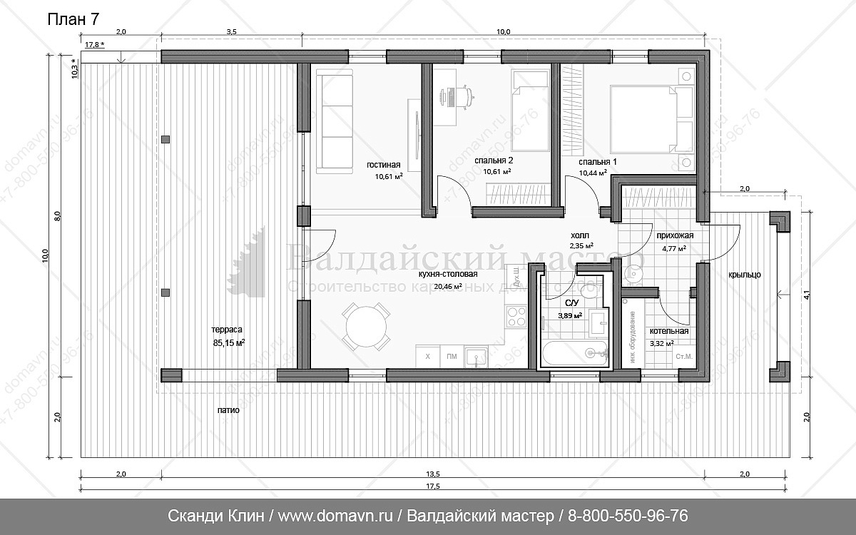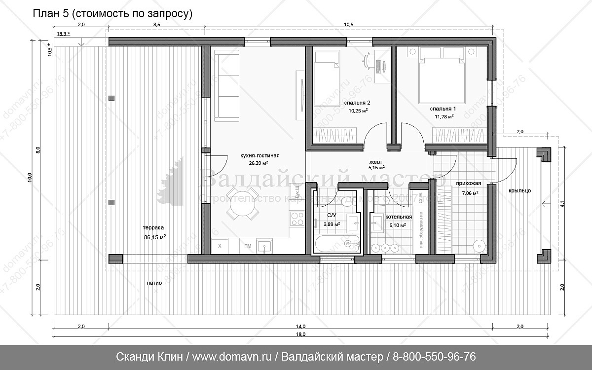 Сканди Клин - Недорогой одноэтажный дом в каркасном исполнении: