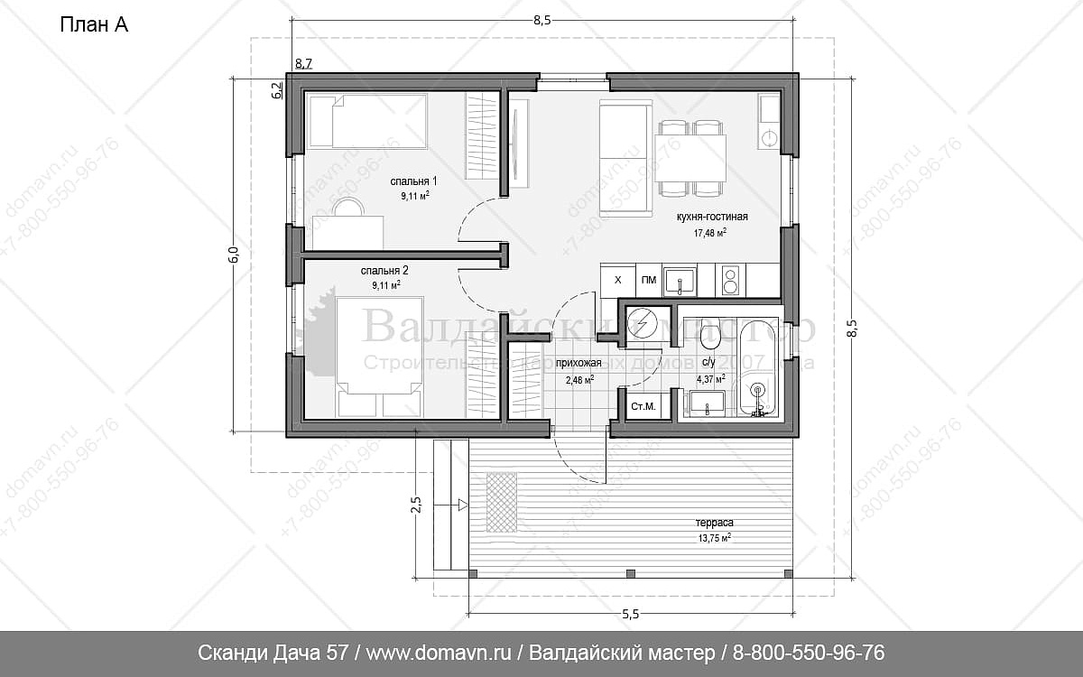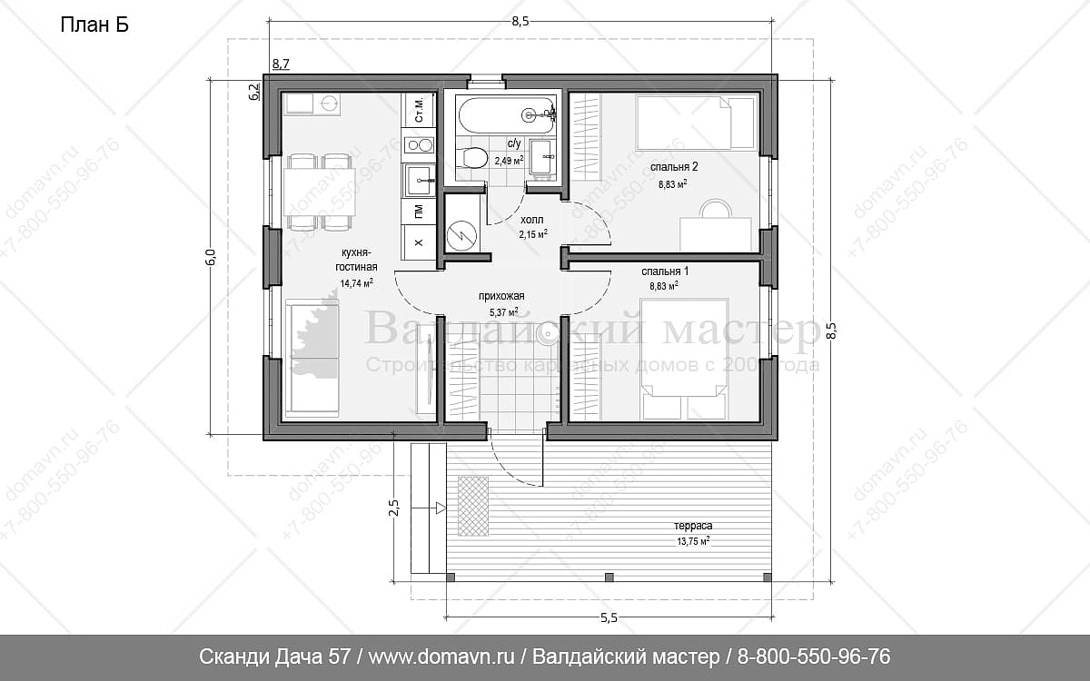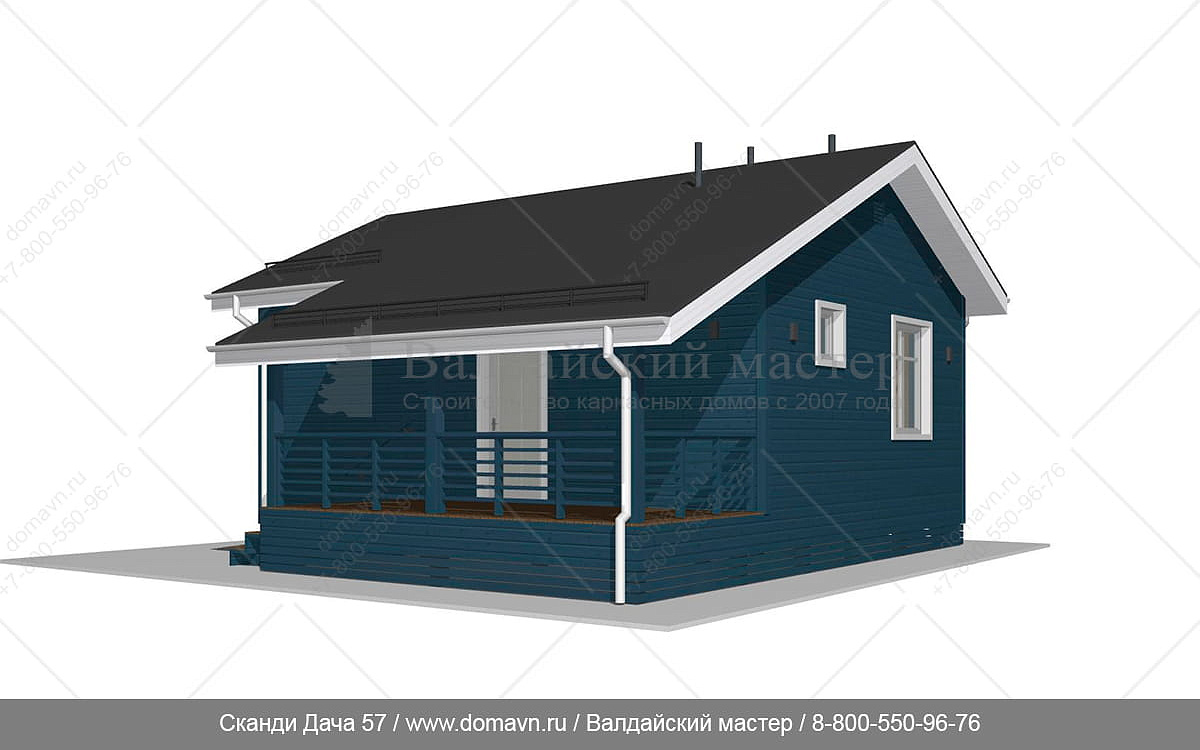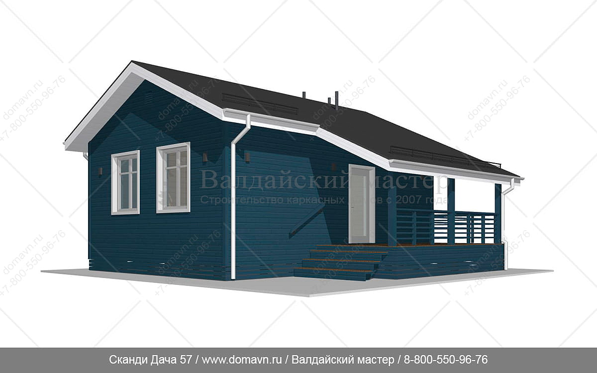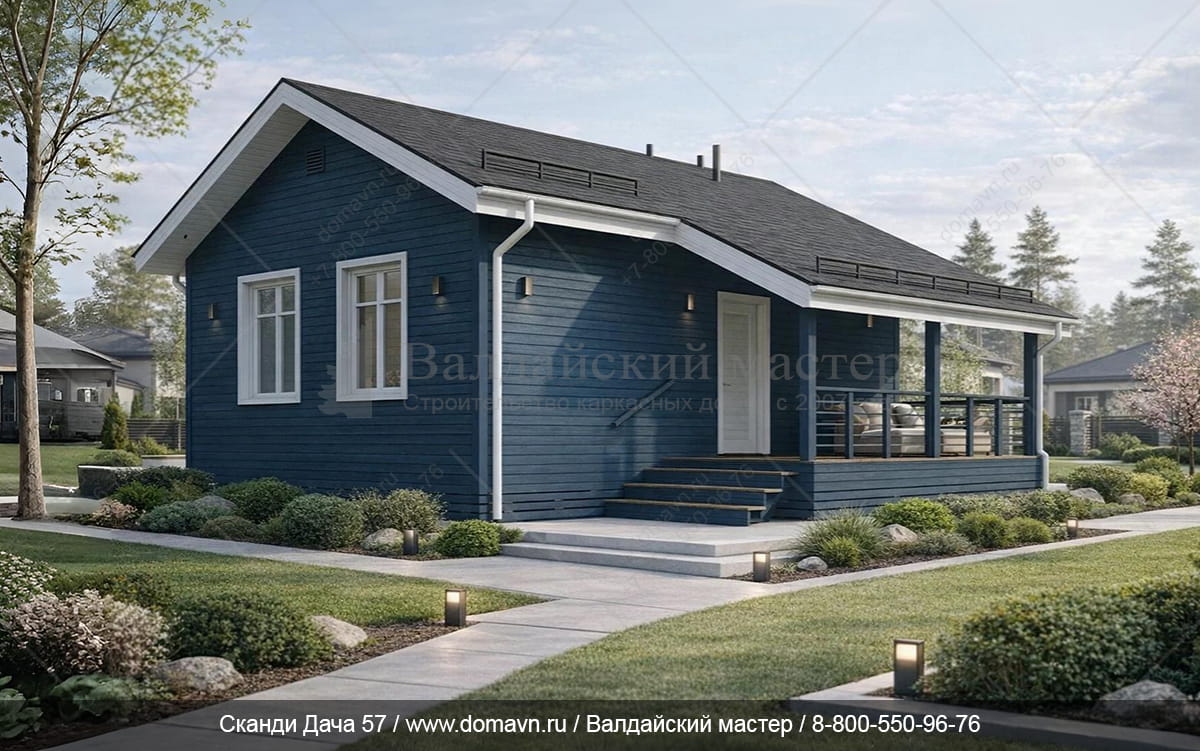 Сканди Дача 57 - Проект одноэтажного каркасного дачного дома 6х8